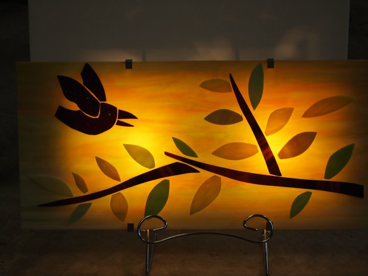 Although The Burwash Glassworks specializes in nature scenes with an eye on mountain living. The Burwash Glassworks also makes custom glass pieces to fit your vision and purpose. From design to final product only one artist will handle your piece ensuring your ideas are not corrupted and your vision stays intact. Please contact us for a custom design quote or more information.